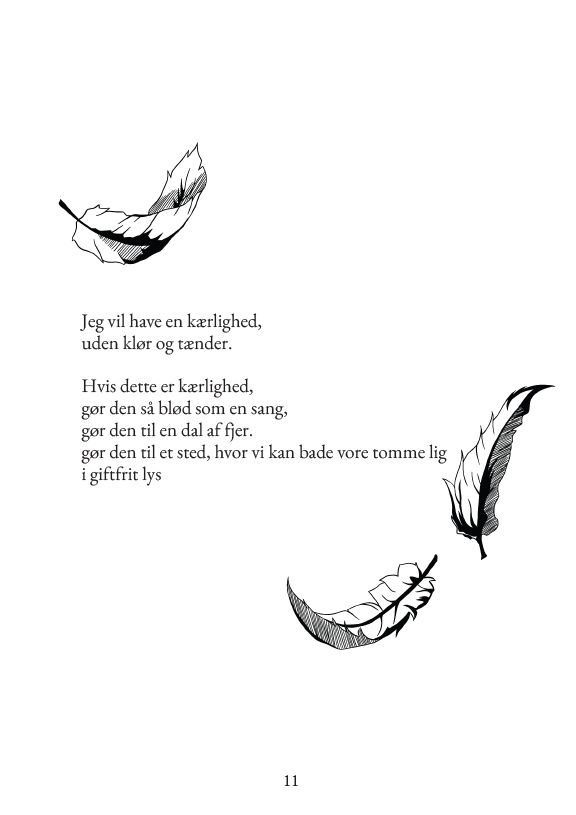 Bogen har fået en fin lektørudtalelse fra Danish Library Center, som blandt andet skriver. “Digtene og tegningerne bruger ofte velkendte hjerte-smerte metaforer, men det er fint og autentisk udført. Ofte får de velkendte metaforer et lille twist, som her, hvor det handler om afhængighed af mennesker og misbrug af alkohol: “Jeg ved ikke, / om jeg vil drukne mig selv / i vodka eller havet.” Digtene vil formentlig kunne læses med stort udbytte af unge.”
