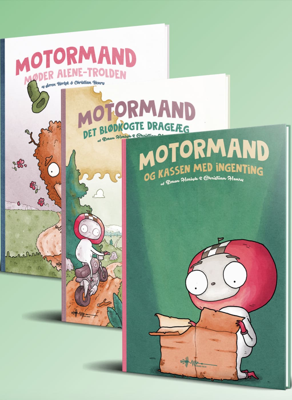 Motormand-serien er en ny og sjov børnebogsserie i tre bind, hvor vi følger titelkarakteren på alverdens eventyr. Serien er skrevet af forfatter Søren Hørlyk, og de farverige illustrationer er udført af Christian Henry, der tidligere har vundet Ping-prisen. Sammen har Hørlyk og Henry kreeret en mikstur af spænding, humor og nærvær, der giver både børn og voksne noget at grine af og tænke over.